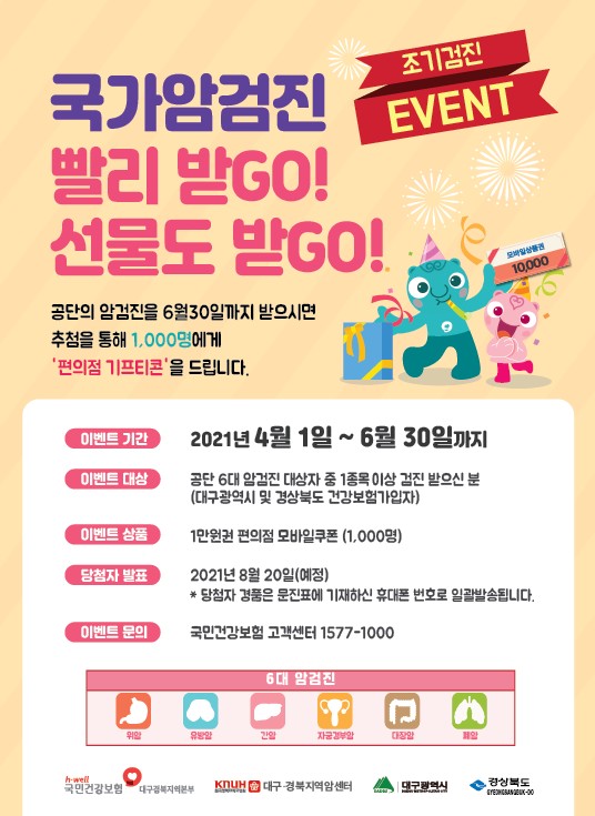 국가암검진 빨리 받GO! 선물도 GO! 페이지 정보 작성자 최고관리자 댓글 0건 조회 3,240회 작성일 21-06-03 10:34 본문 국가암검진 빨리 받GO! 선물도 GO! 목록 다음글5월 1일, 근로자의 날 정상진료 안내 21.04.20 댓글목록 댓글목록 등록된 댓글이 없습니다.