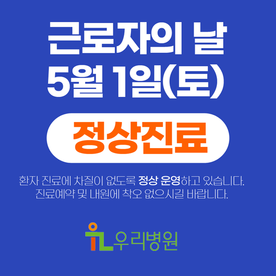 5월 1일, 근로자의 날 정상진료 안내 페이지 정보 작성자 최고관리자 댓글 0건 조회 3,489회 작성일 21-04-20 17:31 본문 5월 1일, 근로자의 날 정상진료 안내 목록 이전글국가암검진 빨리 받GO! 선물도 GO! 21.06.03 다음글설날 연휴 안내 21.02.03 댓글목록 댓글목록 등록된 댓글이 없습니다.